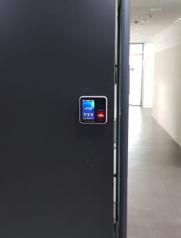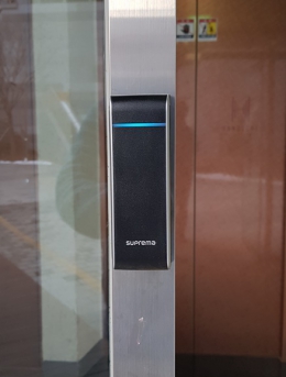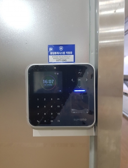 지문인식기를 통한 근태 및 출입기록 관리, 스트라이커, 데드볼트 등으로 유리문 방화문 출입통제