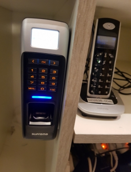 지문인식기를 통한 출입통제, 이엠락과 브라켓을 사용하여 밖에서 안으로 미는 나무문 출입통제 함단말기HU-3000F설치개소2개소일자2018-01-09장소서울 동작구목적지문인식기를 통한 출입통제, 이엠락과 브라켓을 사용하여 밖에서 안으로 미는 나무문 출입통제 함 -